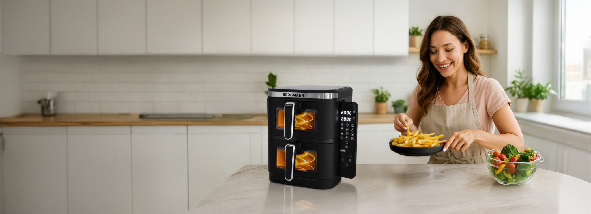 W odpowiedzi na panujący trend marka BERGMANN stworzyła linię nowoczesnych frytkownic beztłuszczowych, które pozwalają przygotować ulubione dania szybciej, zdrowiej i z doskonałym smakiem – bez kompromisów.