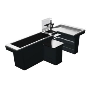 Stanowiska kasowe są dostępne w wersjach prawostronnych i lewostronnych, co ułatwia dopasowanie ich do układu sklepu i preferencji obsługi.