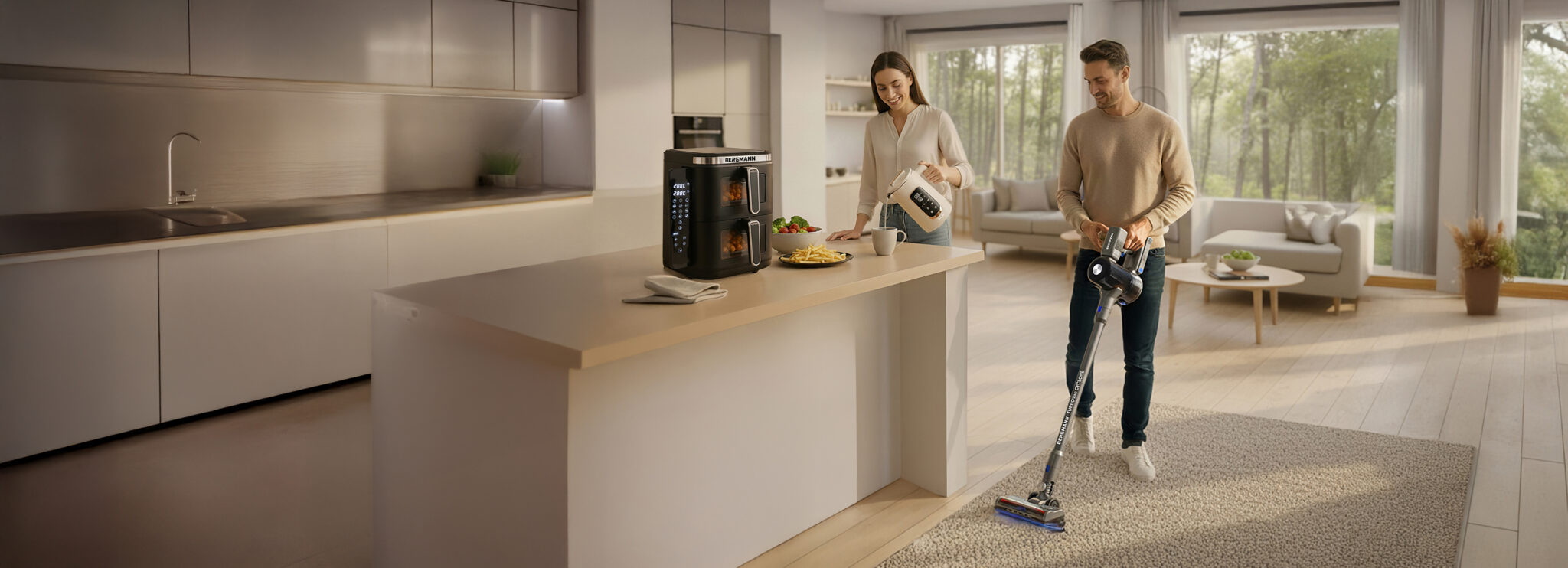 Nowoczesne odkurzacze pionowe BERGMANN to połączenie mocy tradycyjnego odkurzacza z mobilnością lekkiego sprzętu bezprzewodowego. Zaprojektowane z myślą o codziennej wygodzie, idealnie sprawdzają się w każdym domu zarówno w małych mieszkaniach, jak i większych przestrzeniach. To urządzenia, które ułatwiają życie, pozwalając sprzątać szybciej, skuteczniej i bez wysiłku.