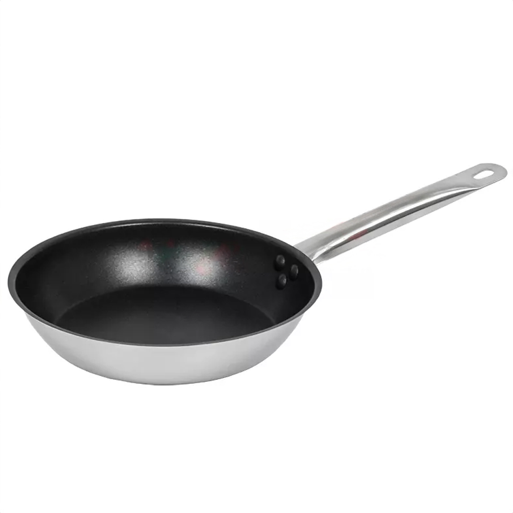 Patelnia nieprzywierająca wykonana ze stali nierdzewnej o średnicy 24 cm i wielowarstwowym dnie typu sandwich (stal nierdzewna-aluminium-stal nierdzewna) o grubości 6 mm. Patelnia posiada ergonomiczny uchwyt o wysokiej wytrzymałości termicznej, wykonany z materiału minimalizującego ryzyko poparzenia w trakcie smażenia potraw. Patelnia może być użytkowana na wszystkich typach kuchni: elektrycznej, gazowej, ceramicznej oraz indukcyjnej. Doskonale nadaje się do smażenia wszelkiego rodzaju potraw. Sprawdzi się w każdego rodzaju kuchni lokalu gastronomicznego, restauracji, placówce oświatowej czy socjalnej.