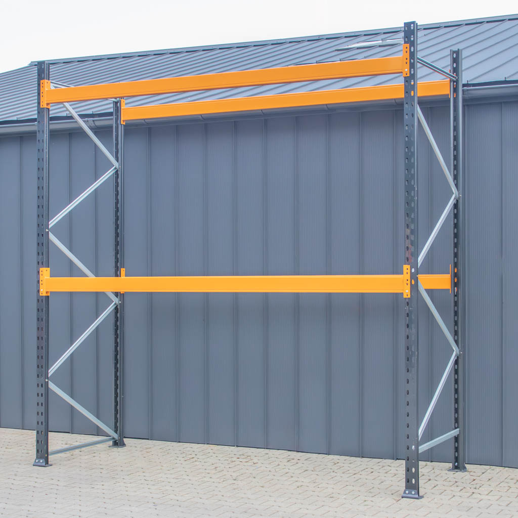 Regał paletowy LINK 51 wysokiego składowania o wysokości 225 cm i długości 376 cm, ilość poziomów 0+2, pozwoli uporządkować Twój magazyn. Maksymalne obciążenie na poziom 2000 kg, nośność miejsca paletowego wynosi 500 kg.