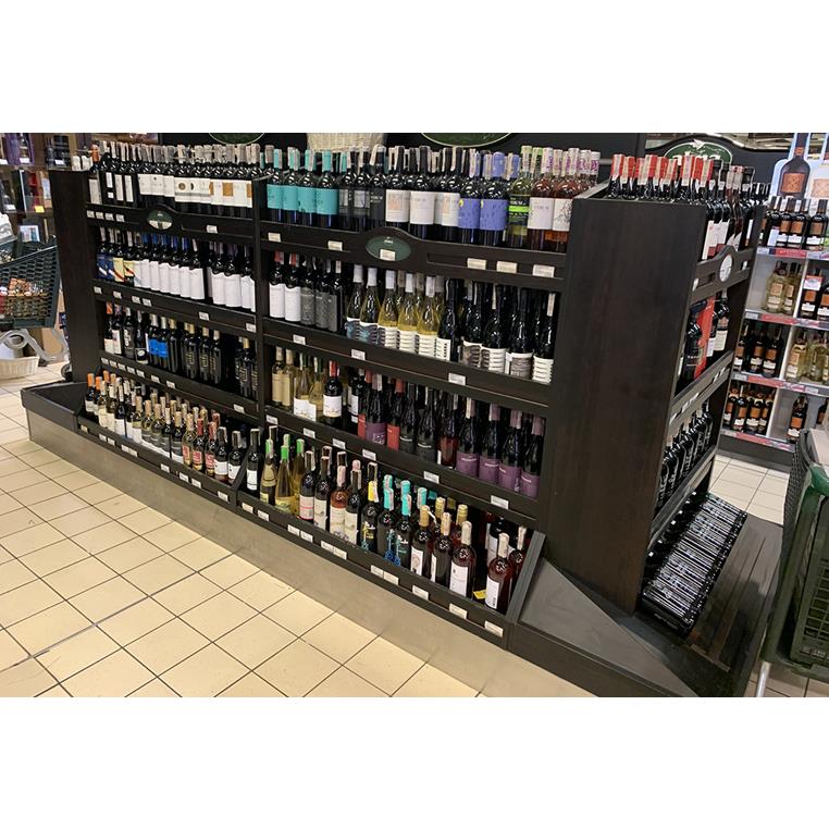Regał drewniany z przeznaczeniem na napoje, alkohol, słodycze. Regał posiada 4 półki.