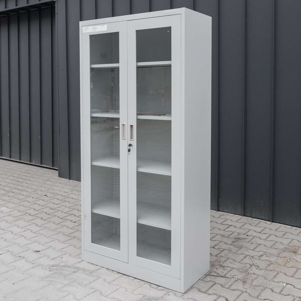 Szafa biurowa metalowa na dokumenty Mega-M WENUS przeszklona poserwisowa – wygodne przechowywanie i szybki dostęp do dokumentacji